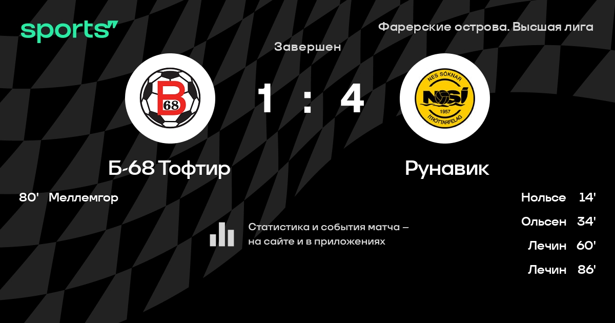 Б-68 Тофтир – Рунавик: Рунавик забивает в 4 последних матчах против этого соперника