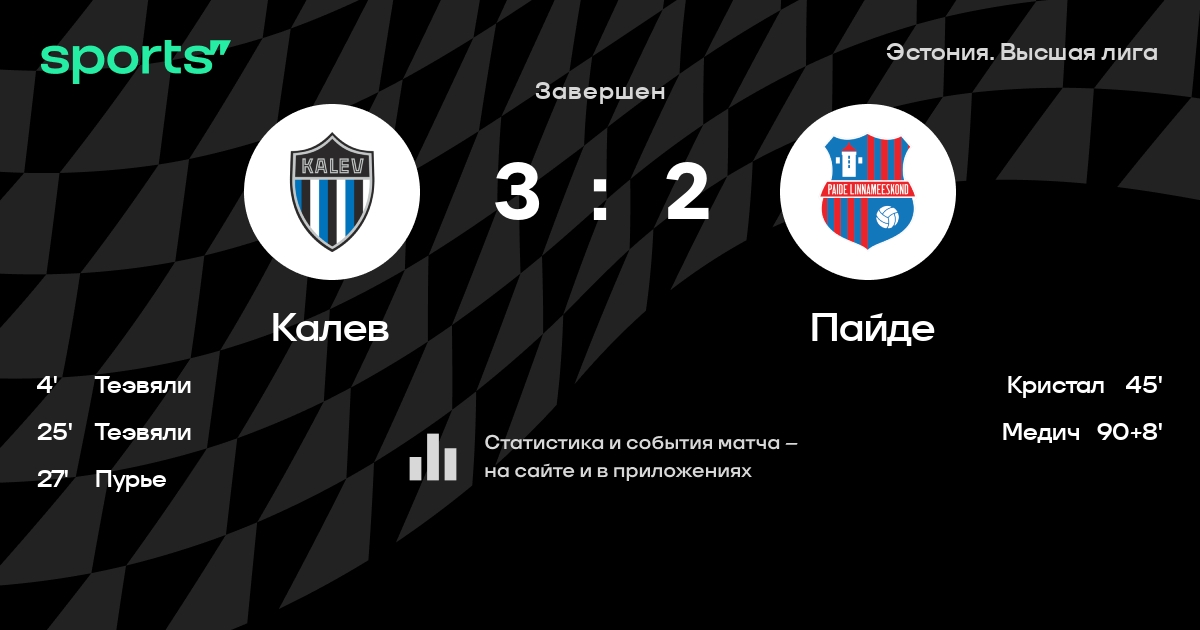 Ebrima Jarju - Салисте, Баранов, Юхкам, Лиландер - Хыйм, Daniel Luts, Кристал, Саарма - Лутс, СисейЗапасные: Аксалу, Оямаа, Медич, Фролов, Рийберг, Оямаа, Gomis, Агьепонг, Епиххин