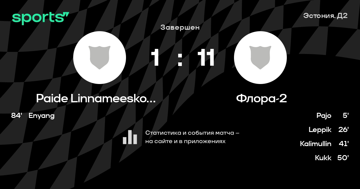Sander Ristna - Sten Patrick Prunn, Mark Hendrik Kukk, Сеппик, Robert Veering - Romet Leppik, Roland Lukas, Remo Valdmets, Maksim Kalimullin - Gregor Rõivassepp, Tristan PajoЗапасные: Hendrikson, Palts, Priimann, Vahemets, Leivategija, Luup, Randväli, Kaares, Tamm