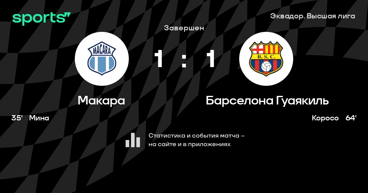 Макара – Барселона Гуаякиль: Барселона Гуаякиль не проигрывает в 6 последних матчах против этого соперника