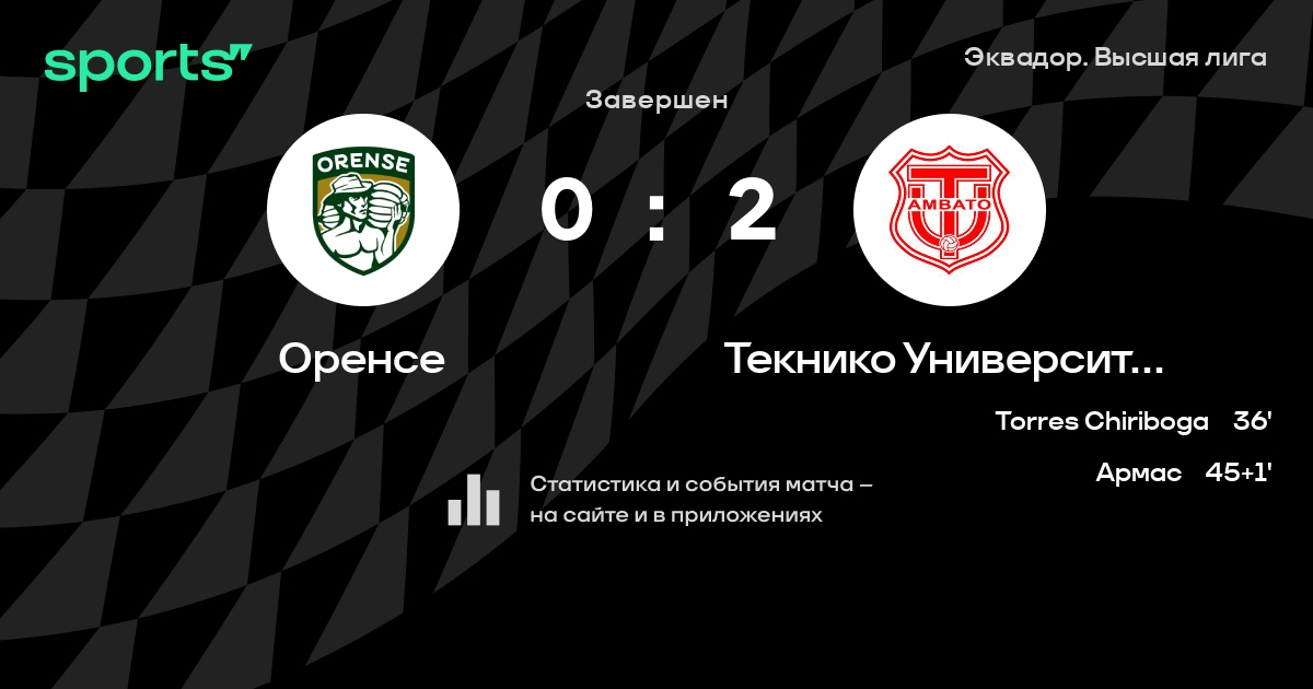 Результат прошлой игры в турнире «Серия A»: Оренсе – Дельфин 0:0. После 12 туров Оренсе набирает 23 очков и занимает 4 место в турнире. Лучший бомбардир команды – Мигель Парралес: он забил 8 в 20 матчах. Оренсе не проигрывает в 3 последних матчах в рамках турнира «Серия A». Оренсе не пропускает в 3 последних матчах в турнире «Серия A». В последних 5 играх Оренсе забивает 3 голов. В последних 5 играх Оренсе пропускает 2 голов.