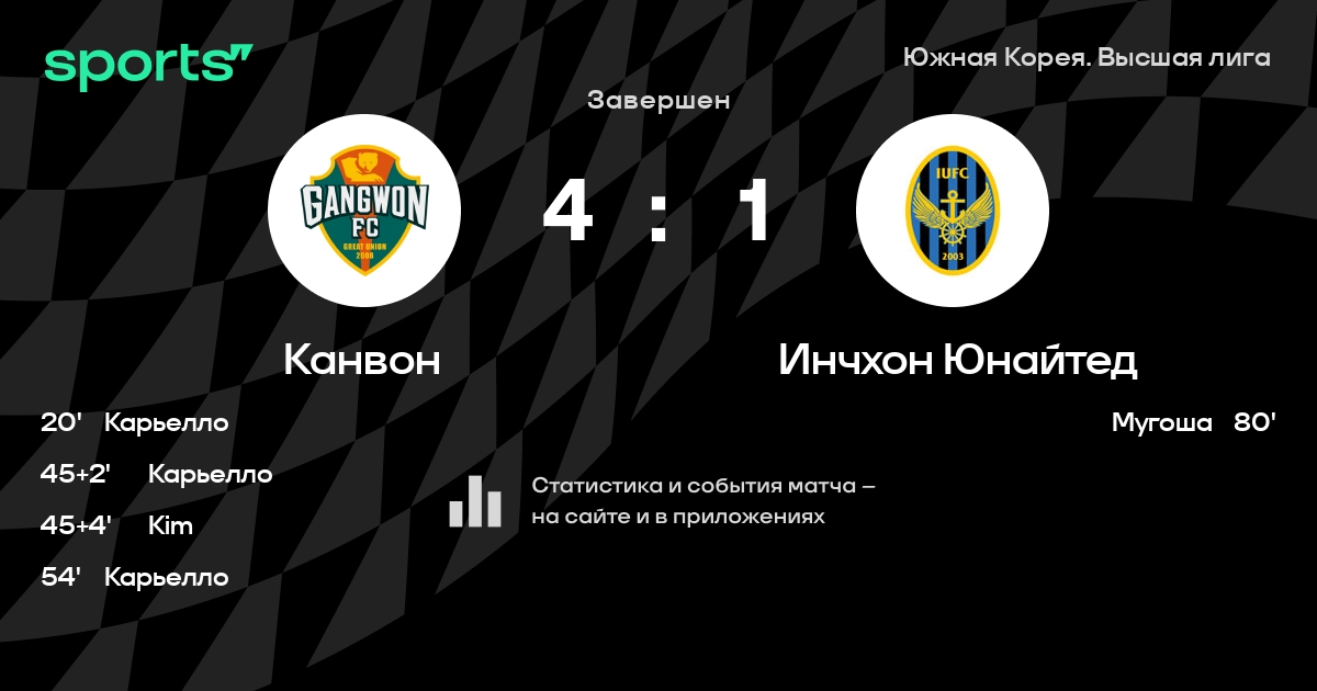 Канвон – Инчхон Юнайтед: Инчхон Юнайтед не проигрывает в 7 из 9 последних матчей против этого соперника