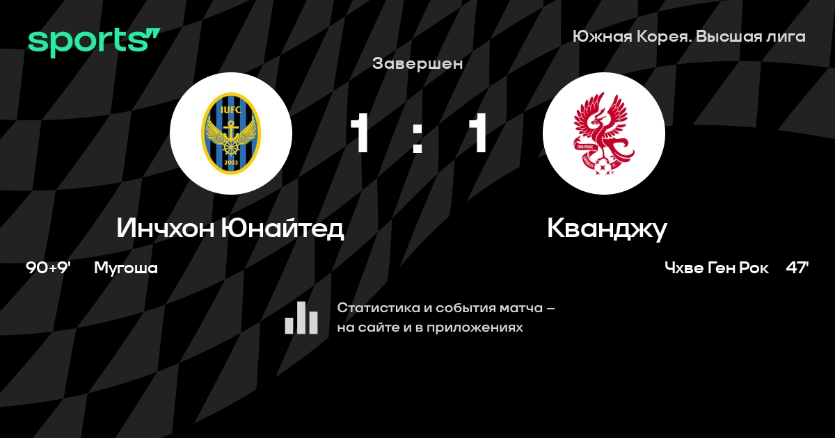 Инчхон Юнайтед – Кванчжу: Кванчжу не проигрывает в 6 из 8 последних матчей против этого соперника в гостях