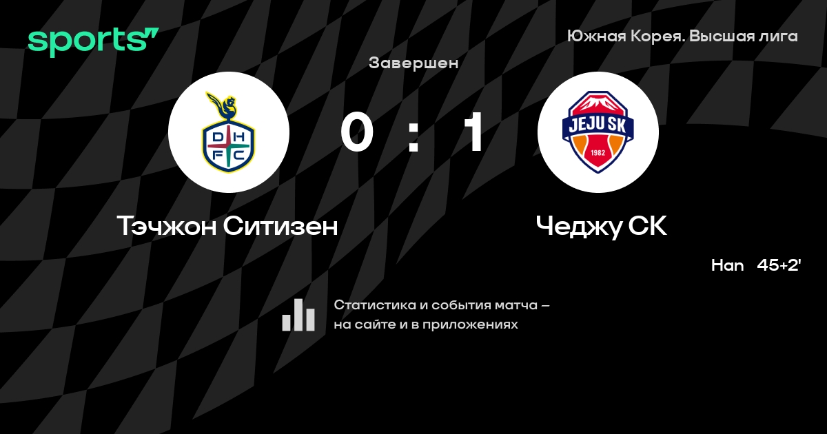 Тэчжон Ситизен – Чеджу Юнайтед: Тэчжон Ситизен забивает в 5 последних матчах против этого соперника