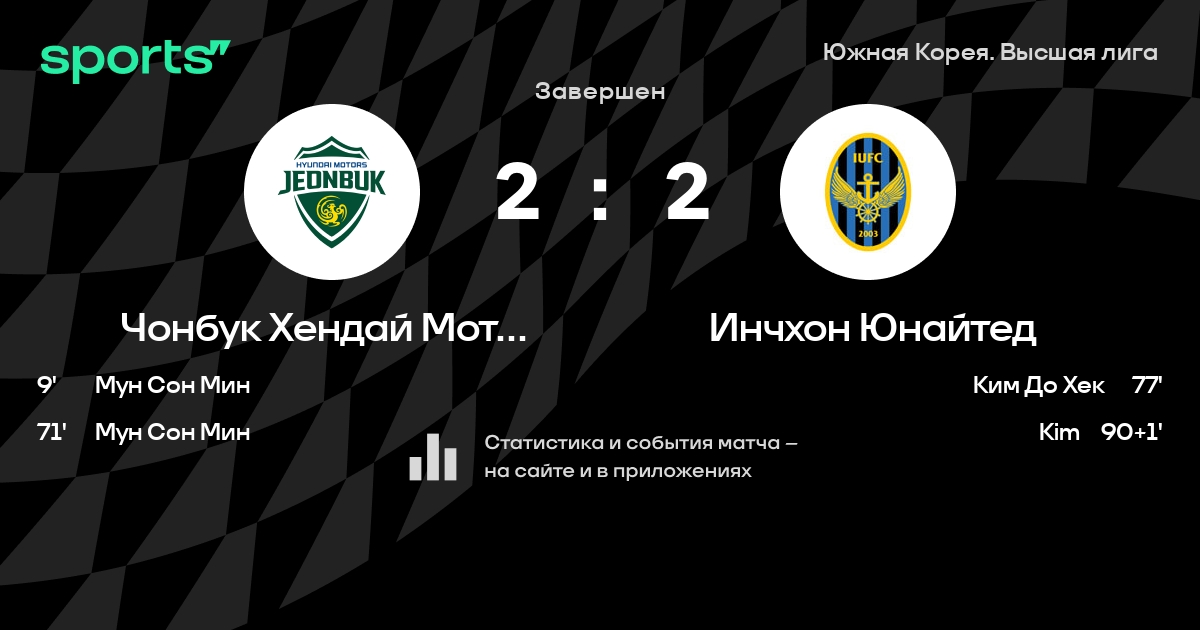 Чонбук Хендай Моторс – Инчхон Юнайтед: Инчхон Юнайтед забивает в 3 последних матчах против этого соперника