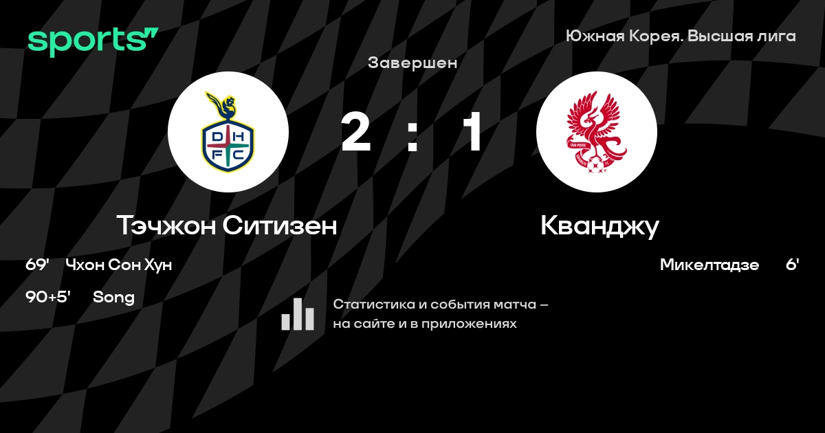 Тэчжон Ситизен – Кванчжу: Кванчжу не проигрывает в 8 последних матчах против этого соперника