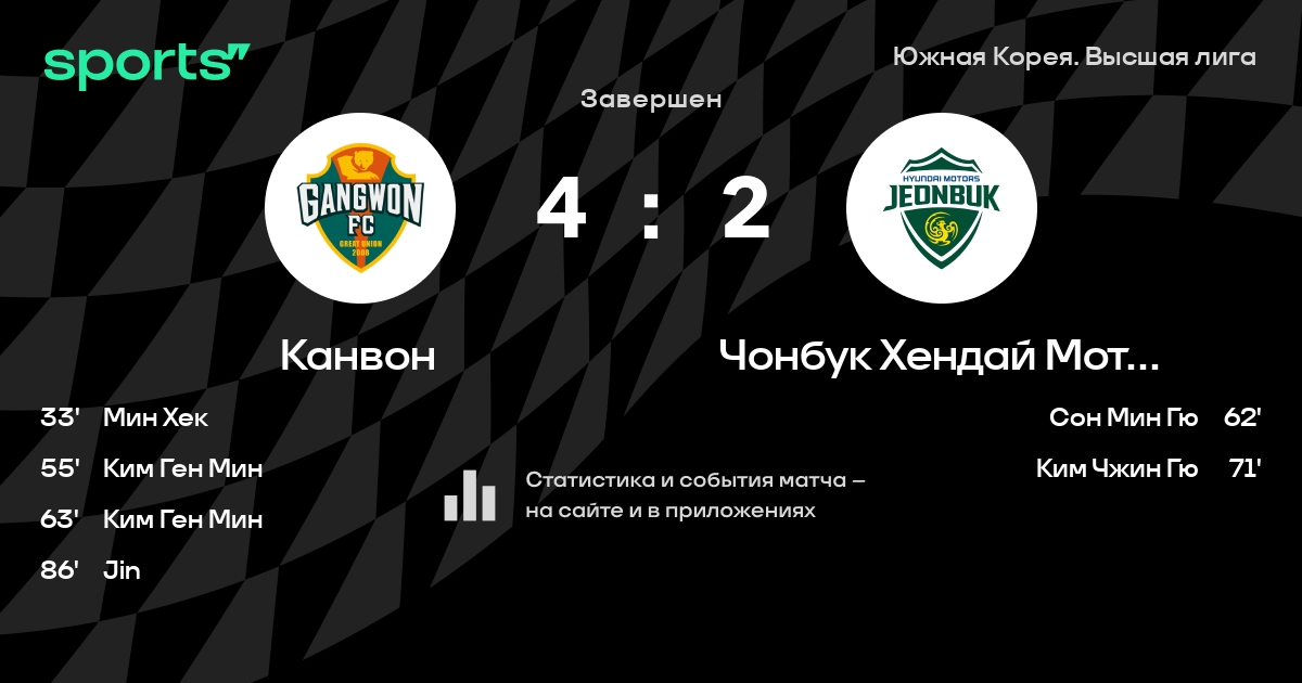 Канвон – Чонбук Хендай Моторс: Канвон побеждает в 3 последних очных матчах