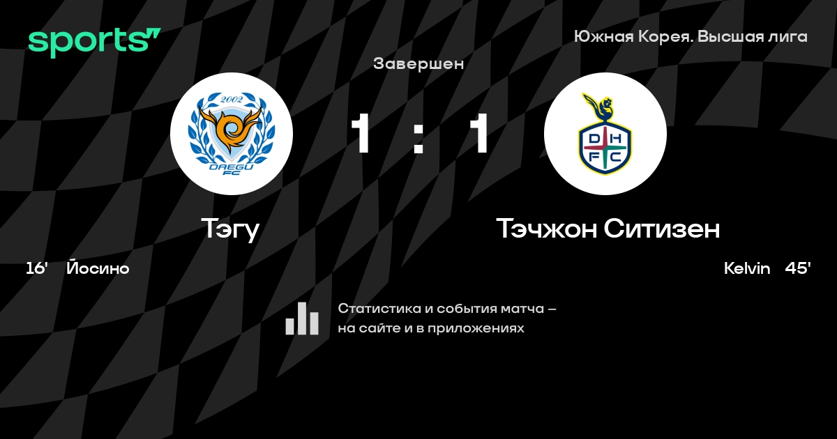 Тэгу – Тэчжон Ситизен: Тэчжон Ситизен не пропускает в 3 последних матчах против этого соперника