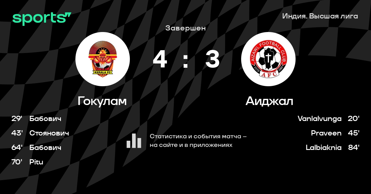 Гокулам – Аиджал: Гокулам забивает в 4 последних матчах против этого соперника