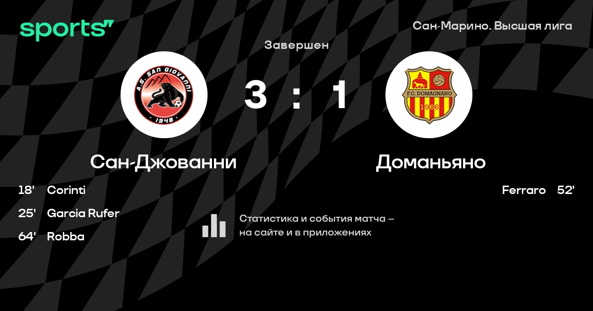 Сан-Джованни играет вничью в 3 последних очных встречах дома в турнире «Высшая лига»