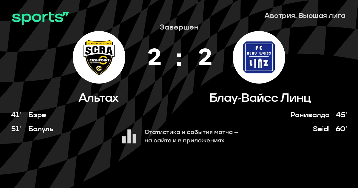 Альтах – Блау-Вайсс Линц: Блау-Вайсс Линц забивает в 5 из 7 последних матчей против этого соперника