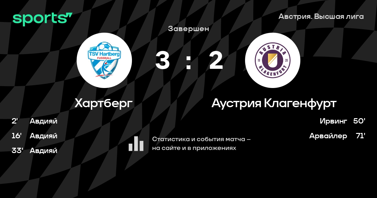 Хартберг – Аустрия Клагенфурт: Аустрия Клагенфурт забивает в 12 последних матчах против этого соперника