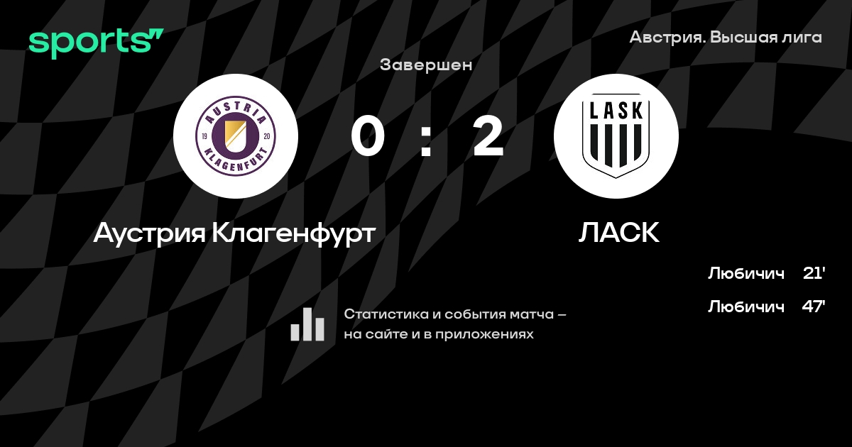 Аустрия Клагенфурт – ЛАСК: ЛАСК забивает в 21 последних матчах против этого соперника