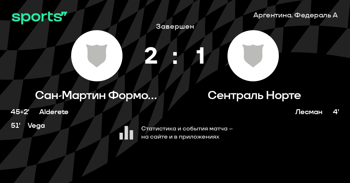 Сан-Мартин Формоса – Сентраль Норте: Сентраль Норте не проигрывает в 7 из 8 последних матчей против этого соперника
