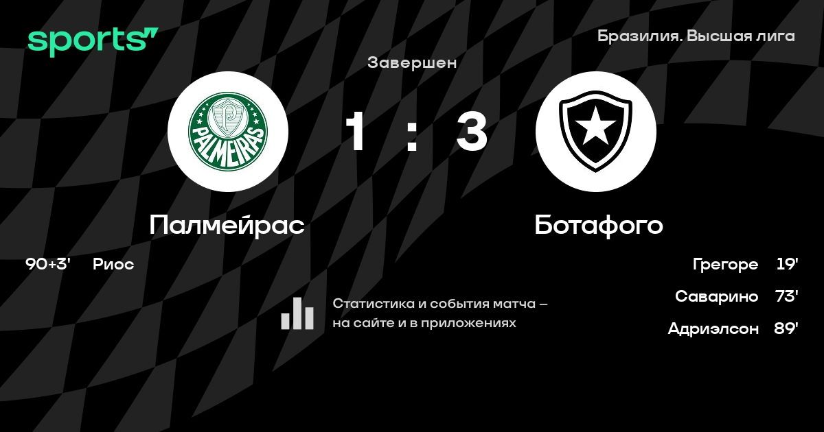 Уэвертон - Кайо Паулиста, Гомес, Рейс, Маркос Роша - Морено, Риос, Фелипе Андерсон, Рафаэл Вейга, Эстевао - РониЗапасные: Ломба, Хиай, Вандерлан, Майке, Серкейра, Зе Рафаэл, Маурисио, Габриэл Менино, Фабиньо, Дуду, Лазаро, Лопес