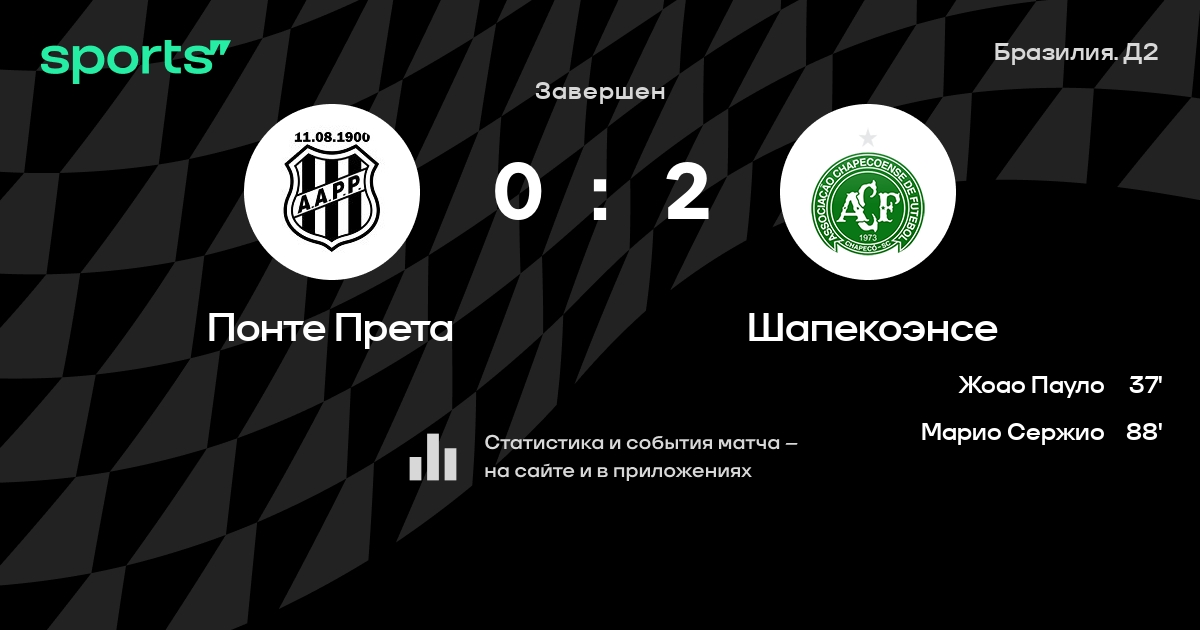 Результат прошлой игры в турнире «Серия B»: Сантос – Понте Прета 2:2. После 24 туров Понте Прета набирает 29 очков и занимает 13 место в турнире. Лучший бомбардир команды – Жеферсон Мариньо: он забил 11 в 29 матчах. Понте Прета не может выиграть в 5 последних матчах в рамках турнира «Серия B». Понте Прета пропускает в 5 последних матчах в турнире «Серия B». В последних 5 играх Понте Прета забивает 5 голов. В последних 5 играх Понте Прета пропускает 7 голов.