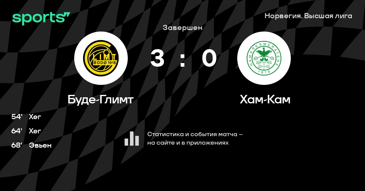 Результат прошлой игры в турнире «Высшая лига»: Хам-Кам – Сандефьорд 1:1. После 21 туров Хам-Кам набирает 25 очков и занимает 9 место в турнире. Лучший бомбардир команды – Gard Simenstad: он забил 4 в 20 матчах. В последних 5 играх Хам-Кам забивает 6 голов. В последних 5 играх Хам-Кам пропускает 7 голов.