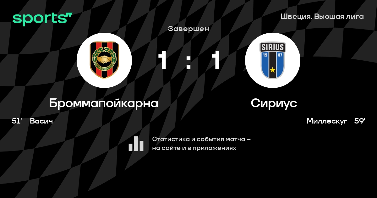 Броммапойкарна – Сириус: Броммапойкарна забивает в 3 последних матчах против этого соперника