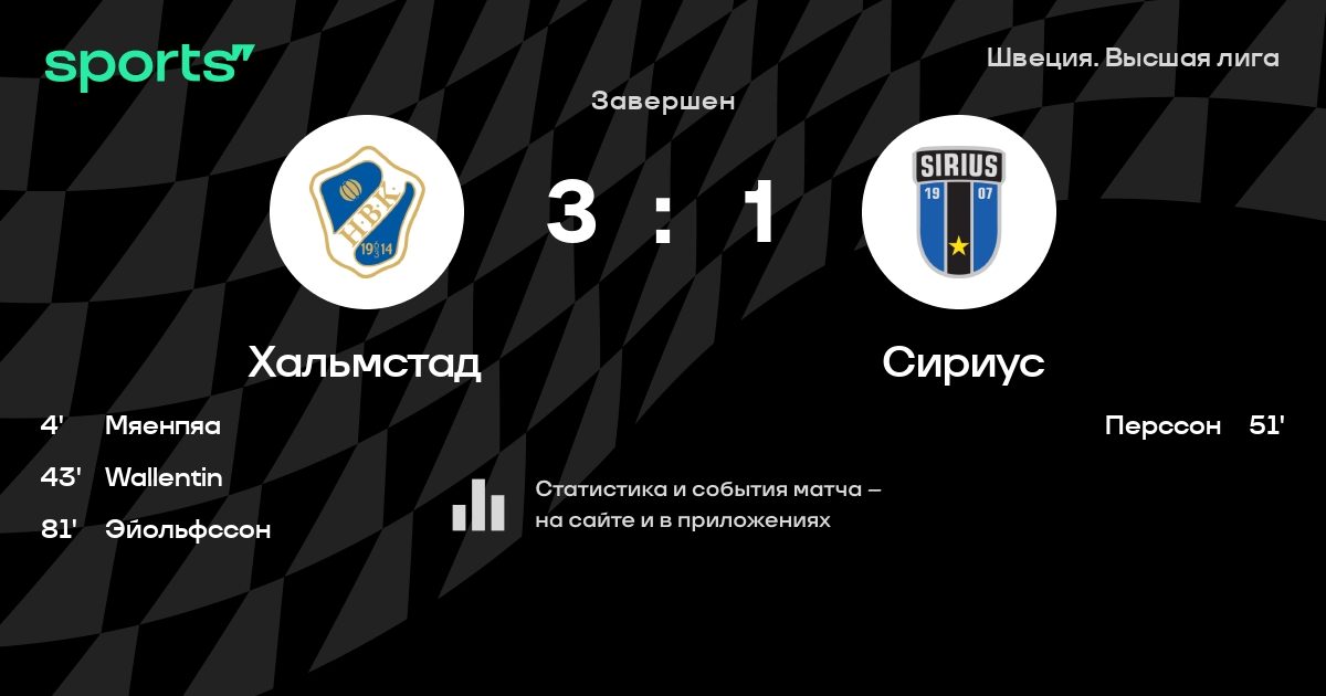 Реннинг - Ольссон, Юханссон, Wallentin - Vinícius Nogueira de Oliveira, Алланссон, Сведберг, Боман - Мяенпяа, Granath, АньероЗапасные: Nielsen, Баффо, Kurtulus, Ahlstrand, Эйольфссон, Ингасон, Вестермарк, Турготт, Видесхейм-Пауль