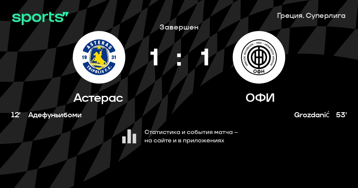 Астерас – ОФИ: Астерас забивает в 3 последних матчах против этого соперника
