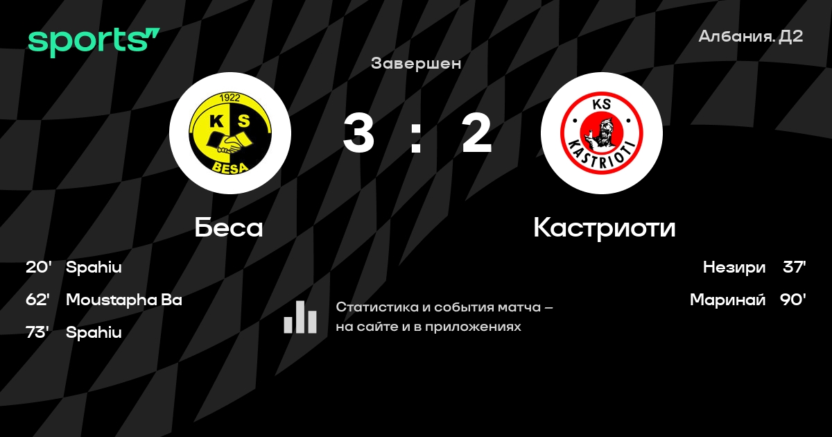 Беса – Кастриоти: Беса забивает в 3 последних матчах против этого соперника