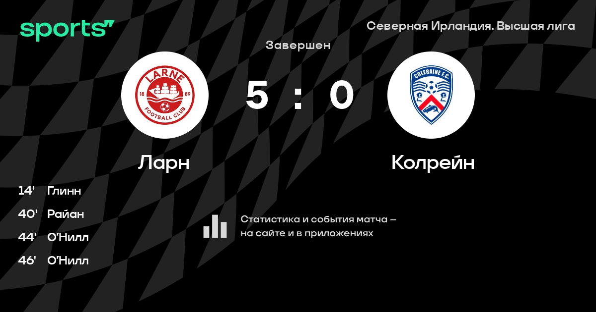 Ларн – Колрейн: Колрейн не проигрывает в 5 из 7 последних матчей против этого соперника