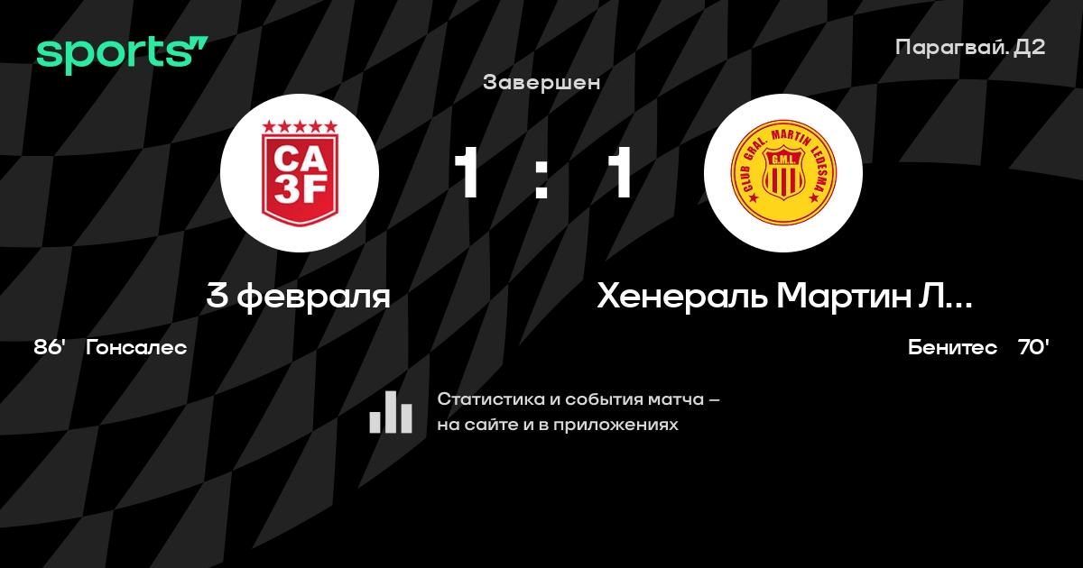 3 февраля – Хенераль Мартин Ледесма: Хенераль Мартин Ледесма не проигрывает в 7 из 8 последних матчей против этого соперника