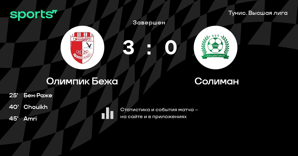 Олимпик Бежа – Солиман: Солиман забивает в 5 последних матчах против этого соперника