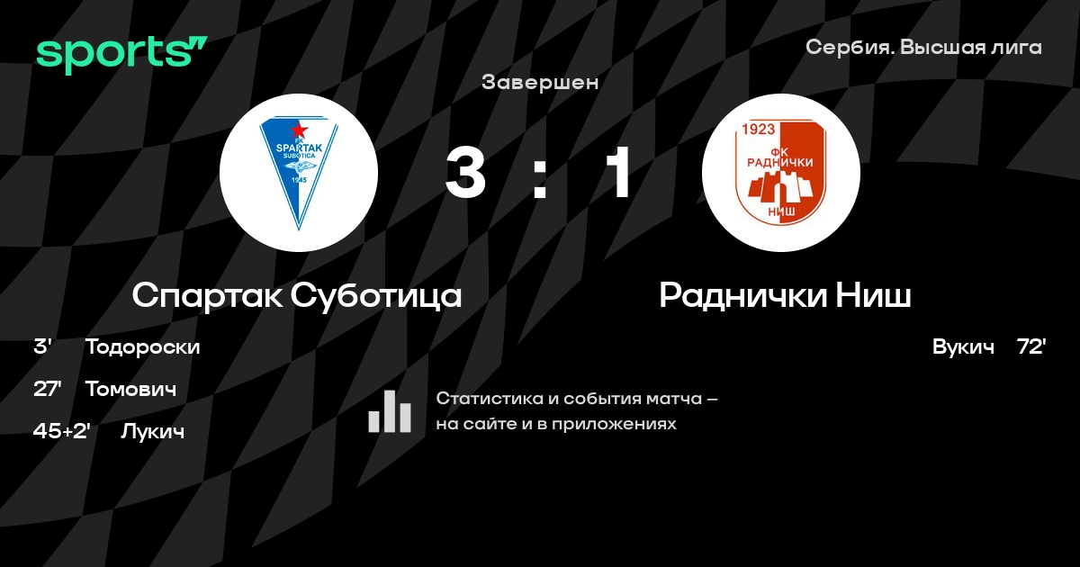 Спартак Суботица – Раднички Ниш: Спартак Суботица забивает в 3 последних матчах против этого соперника