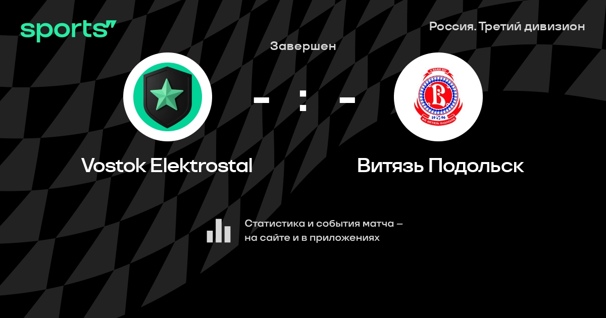 Результат прошлой игры в турнире «Третий дивизион»: Vityaz Noginsk – Vostok Elektrostal 0:0. После 8 туров Vostok Elektrostal набирает 17 очков и занимает 3 место в турнире. Vostok Elektrostal не проигрывает в 5 последних матчах в рамках турнира «Третий дивизион». В последних 5 играх Vostok Elektrostal забивает 14 голов. В последних 5 играх Vostok Elektrostal пропускает 2 голов.