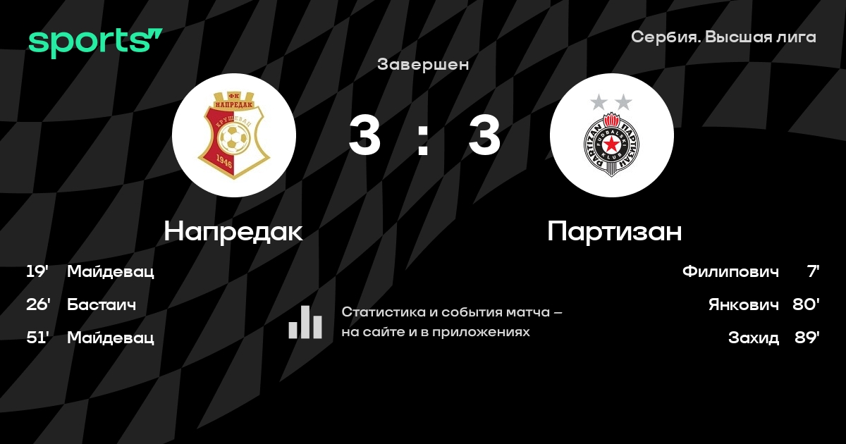 Напредак – Партизан: Партизан не проигрывает в 8 из 10 последних матчей против этого соперника
