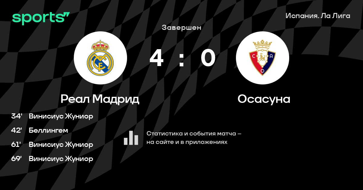 Лунин - Фран Гарсия, Рюдигер, Милитао, Васкес - Беллингем, Камавинга, Вальверде - Винисиус Жуниор, Мбаппе, РодригоЗапасные: Гонсалес, Местре, Менди, Вальехо, Асенсио, Браим Диас, Себальос, Гюлер, Модрич, Эндрик