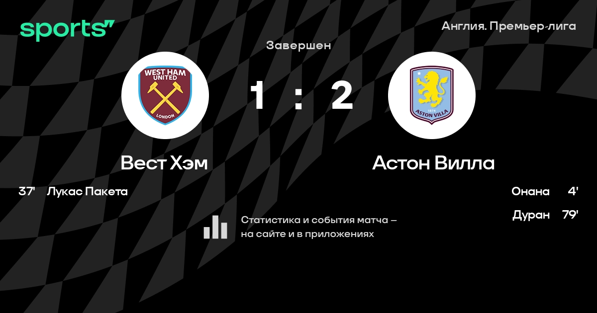 Трансляция Вест Хэм - Астон Вилла