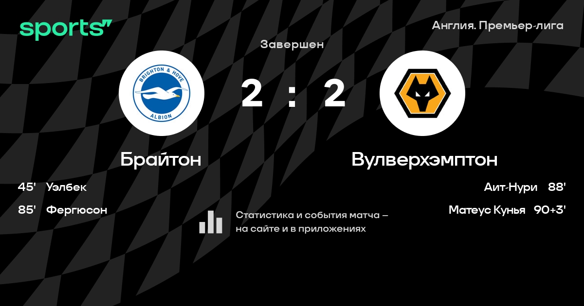 | 8 | Брайтон | 38 | 16 | 13 | 9 | 66 | 59 | +7 | 61 | ||