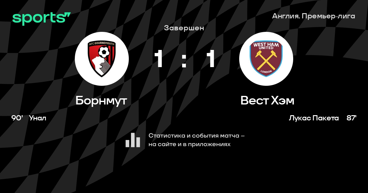 Чемпионат Англии. «Вест Хэм» сыграл вничью с «Борнмутом»
