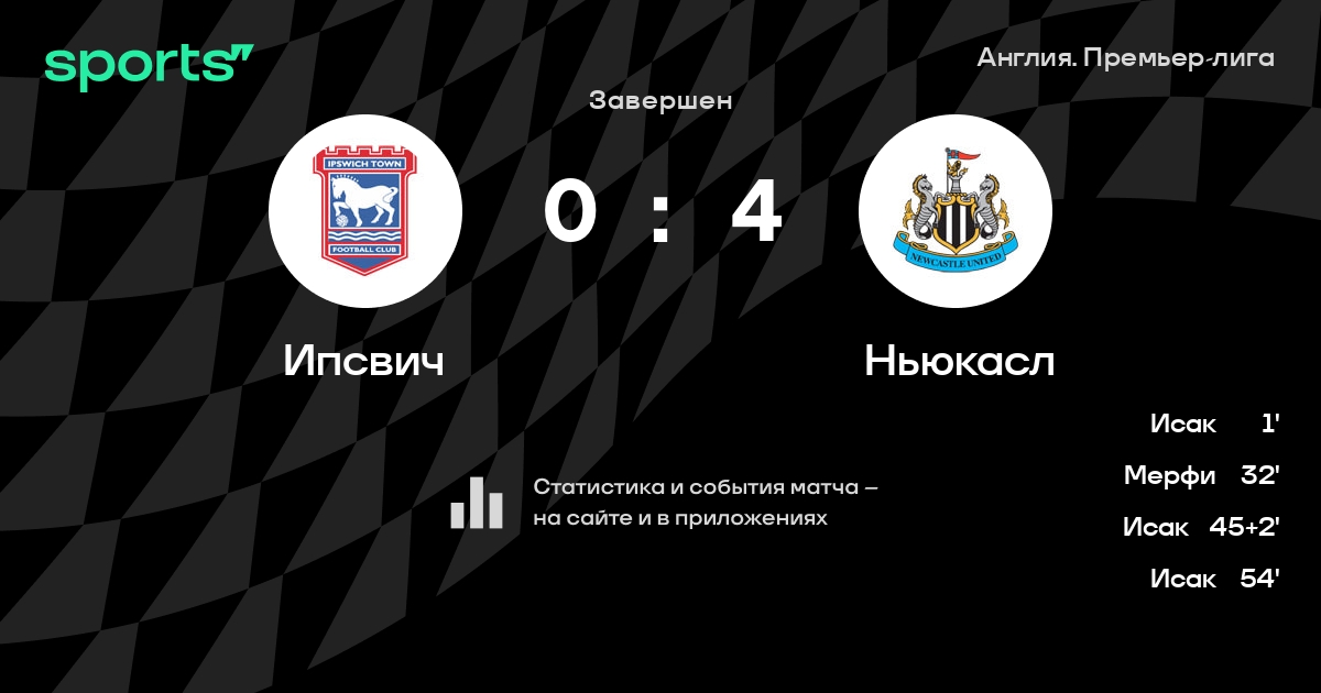 Исак набрал 14 очков за хет-трик «Ипсвичу». Свой первый за «Ньюкасл»