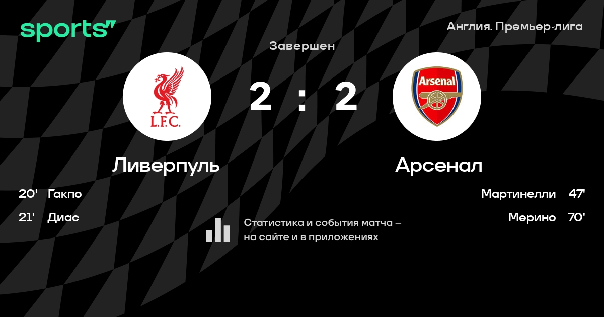 Ливерпуль – Арсенал: Арсенал забивает в 3 последних матчах против этого соперника