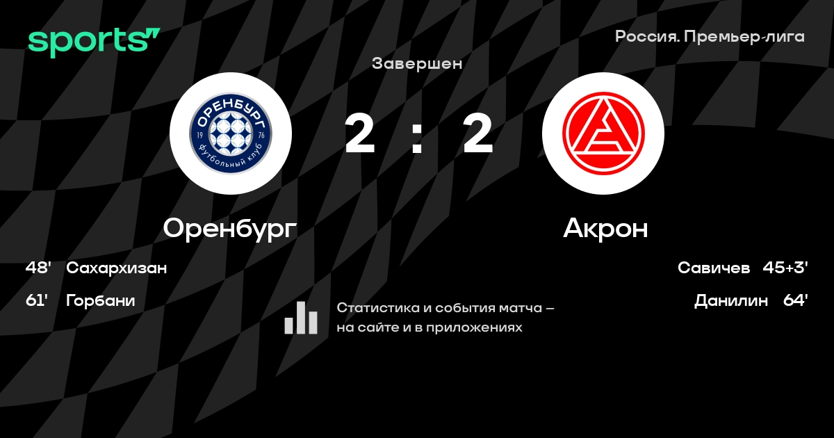Оренбург – Акрон: Оренбург забивает в 3 последних матчах против этого соперника