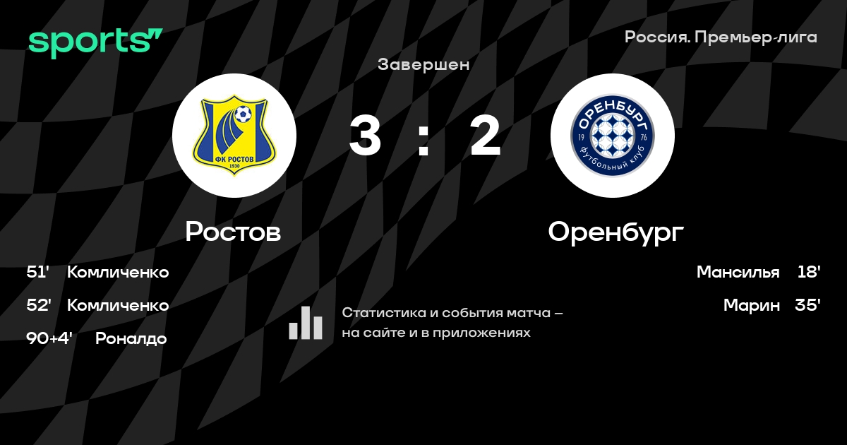 Ростов – Оренбург: Оренбург забивает в 6 последних матчах против этого соперника