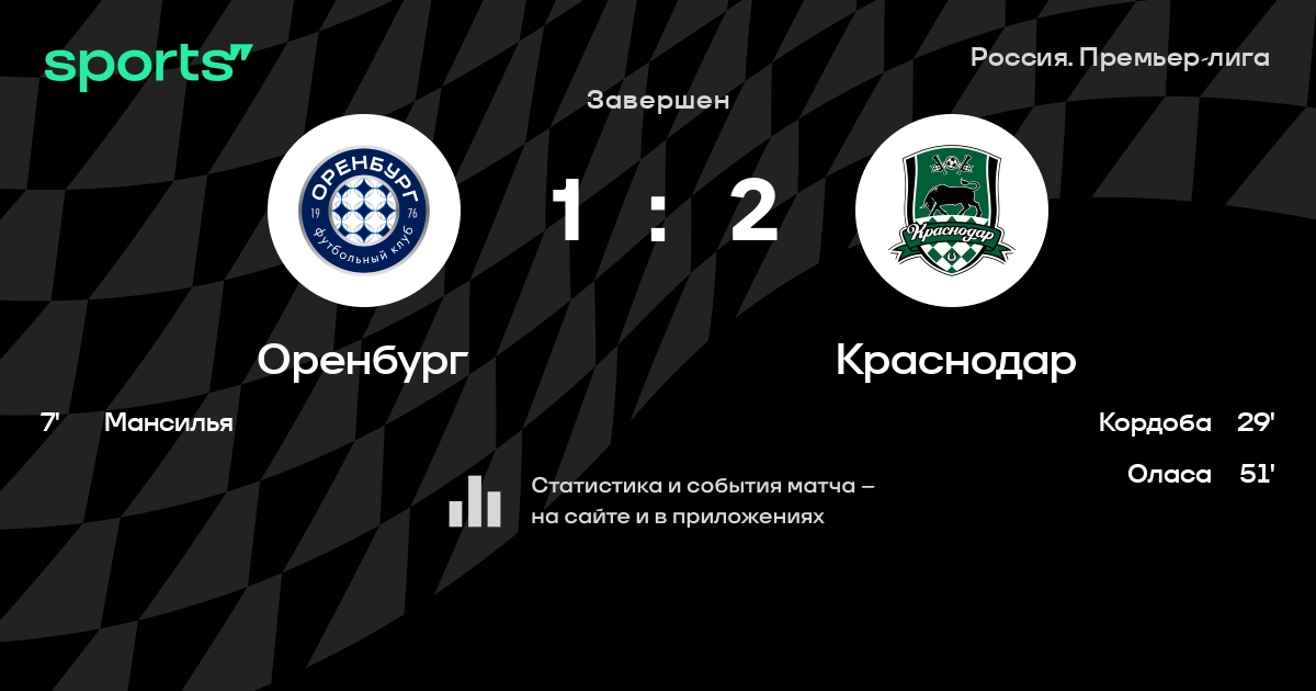 Оренбург – Краснодар: Краснодар побеждает в 3 последних очных матчах