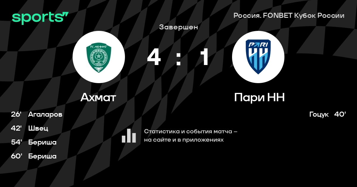 Ахмат – Пари НН: Пари НН забивает в 4 последних матчах против этого соперника
