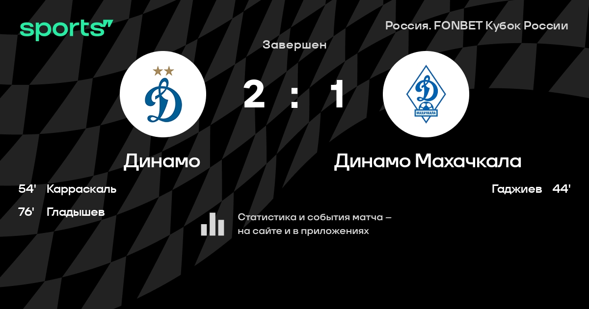 Динамо Махачкала не выигрывает в 8 последних матчах в гостях в турнире «ФОНБЕТ Кубок России»