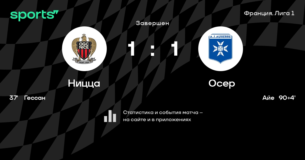 | 4 | Ницца | 34 | 17 | 9 | 8 | 66 | 41 | +25 | 60 | ||