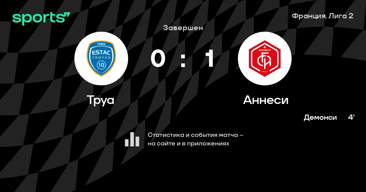 Результат прошлой игры в турнире «Лига 2»: Аннеси – Генгам 1:4. После 18 туров Аннеси набирает 30 очков и занимает 7 место в турнире. Лучший бомбардир команды – Треви Даго: он забил 6 в 18 матчах. В последних 5 играх Аннеси забивает 6 голов. В последних 5 играх Аннеси пропускает 7 голов.
