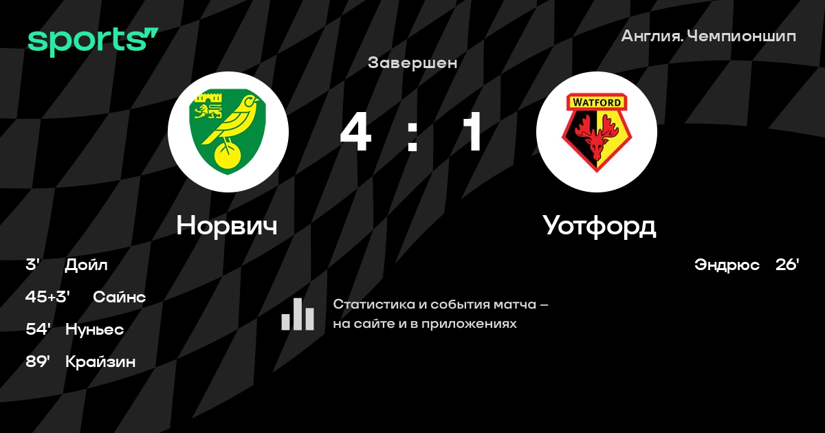 Результат прошлой игры в турнире «Чемпионшип»: Суонси – Норвич 1:0. После 5 туров Норвич набирает 5 очков и занимает 16 место в турнире. Лучший бомбардир команды – Борха Сайнс: он забил 3 в 7 матчах. В последних 5 играх Норвич забивает 4 голов. В последних 5 играх Норвич пропускает 8 голов.