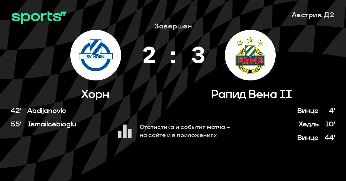 Хорн – Рапид Вена II: Хорн не проигрывает в 7 последних матчах против этого соперника дома