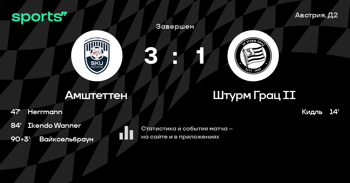 Результат прошлой игры в турнире «Вторая бундеслига»: Санкт-Пельтен – Амштеттен 1:1. После 3 туров Амштеттен набирает 7 очков и занимает 4 место в турнире. Лучший бомбардир команды – Томас Майер: он забил 2 в 4 матчах. Амштеттен не проигрывает в 3 последних матчах в рамках турнира «Вторая бундеслига». В 8 последних матчах в турнире «Вторая бундеслига» Амштеттен обязательно забивает. В последних 5 играх Амштеттен забивает 9 голов. В последних 5 играх Амштеттен пропускает 5 голов.