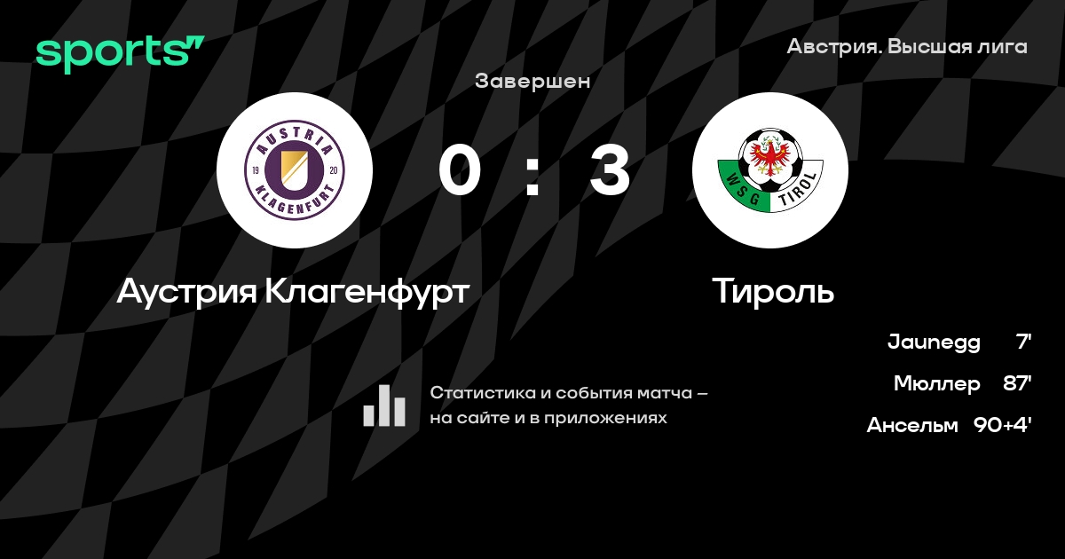 Результат прошлой игры в турнире «Бундеслига»: Штурм – Аустрия Клагенфурт 7:0. После 13 туров Аустрия Клагенфурт набирает 15 очков и занимает 9 место в турнире. Лучший бомбардир команды – Бен Бобциен: он забил 10 в 16 матчах. Аустрия Клагенфурт пропускает в 6 последних матчах в турнире «Бундеслига». В последних 5 играх Аустрия Клагенфурт забивает 6 голов. В последних 5 играх Аустрия Клагенфурт пропускает 14 голов.