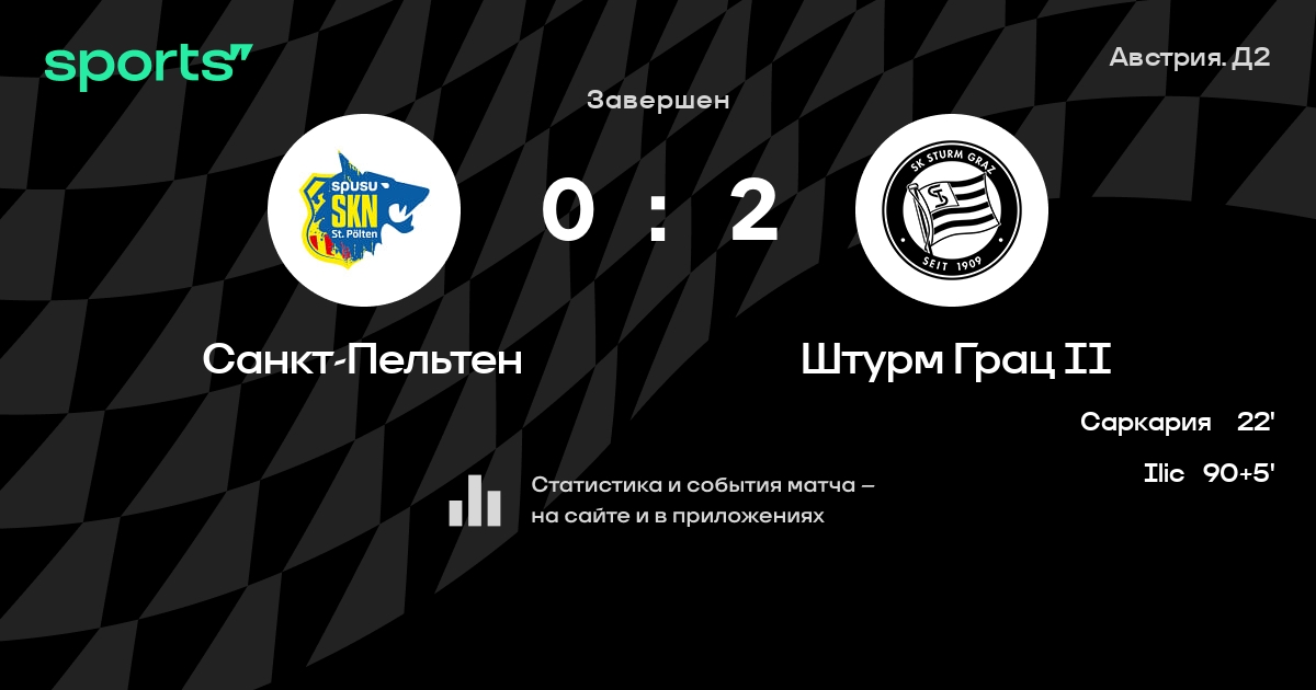 Результат прошлой игры в турнире «Вторая бундеслига»: Штурм Грац II – Адмира 3:1. После 11 туров Штурм Грац II набирает 14 очков и занимает 10 место в турнире. Лучший бомбардир команды – P. Kiedl: он забил 4 в 11 матчах. Штурм Грац II не проигрывает в 7 последних матчах в рамках турнира «Вторая бундеслига». В 5 последних матчах в турнире «Вторая бундеслига» Штурм Грац II обязательно забивает. Штурм Грац II пропускает в 4 последних матчах в турнире «Вторая бундеслига». В последних 5 играх Штурм Грац II забивает 14 голов. В последних 5 играх Штурм Грац II пропускает 8 голов.