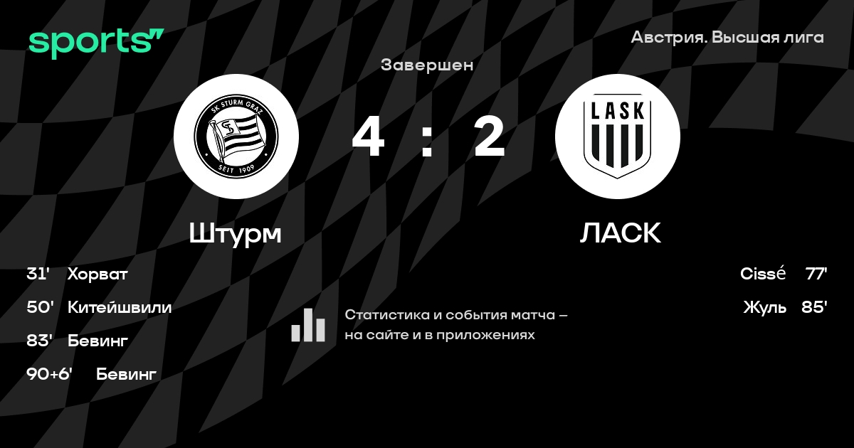 Штурм – ЛАСК: Штурм забивает в 9 последних матчах против этого соперника